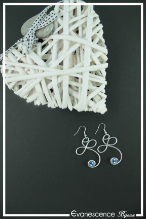 Les Boucles d'oreilles Fila - Couleur Argent et Bleu gris sont réalisées avec du fil d'aluminium de couleur argentée