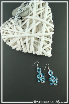 Le fil d'aluminium de couleur argentée et turquoise fait 2 mm diamètre. Les boucles d'oreilles mesurent environ 6,5 cm de long