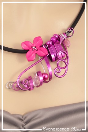 La fleur en synthétique de couleur fuchsia fait 3 cm de diamètre et les autres perles sont de couleur fuchsia. Le collier mesure environ 14 cm de diamètre (45 cm de long)