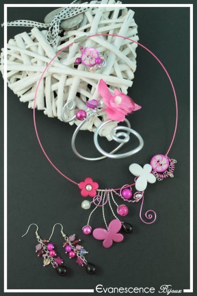 La Parure Maya - Couleur Fuchsia et Blanc est composée des créations suivantes :